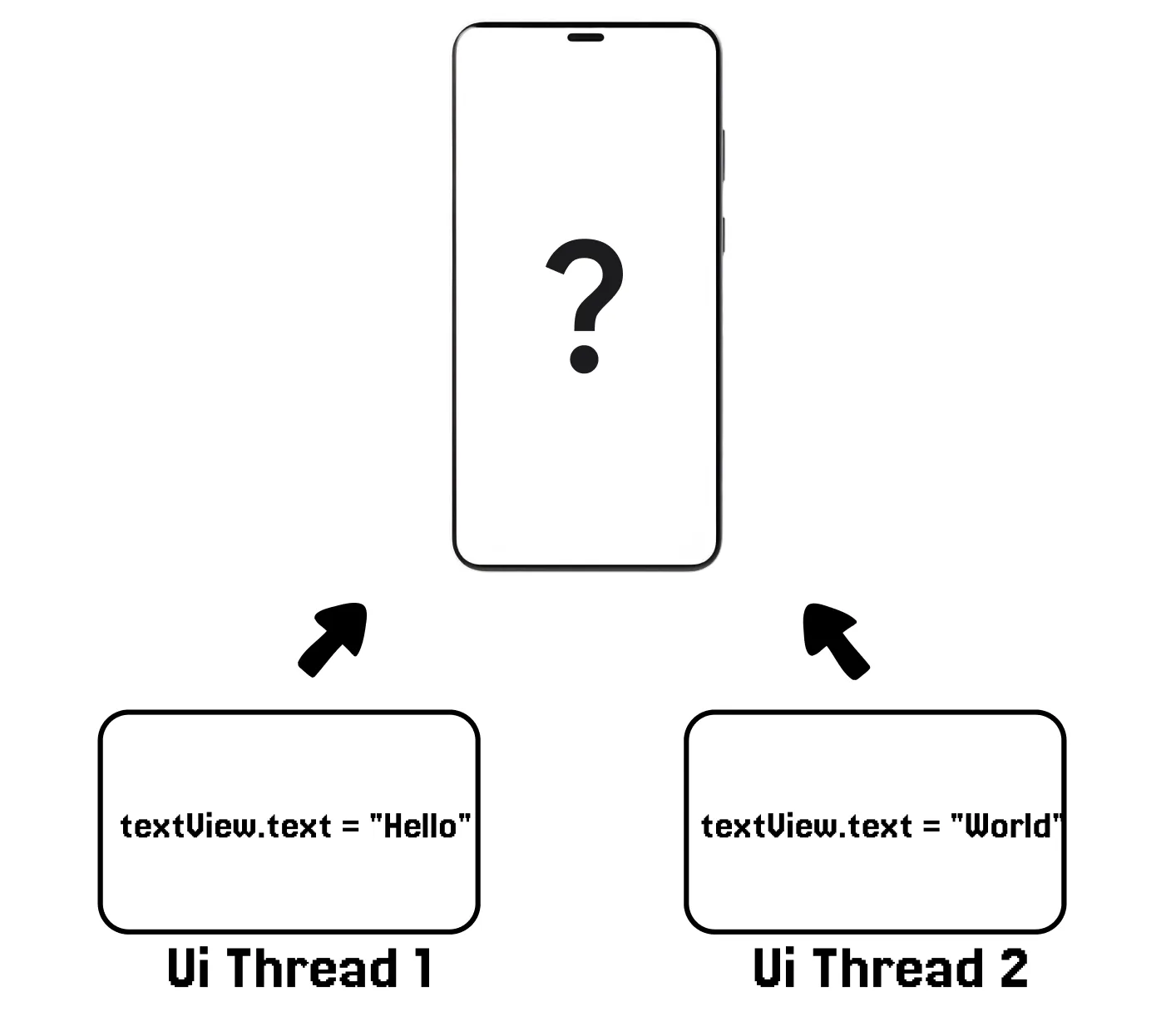 Button, TextView, RecyclerView 등 UI 요소는 멀티 쓰레드에서 동시에 접근하면 상태가 꼬이거나 앱이 크래시 날 수 있다.