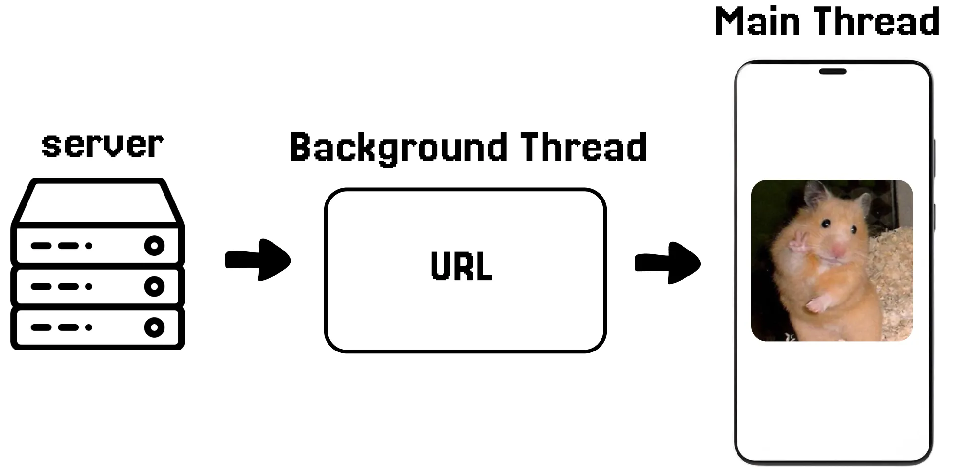 다음과 같이 새로운 쓰레드에서 서버 API를 호출하여 햄스터 사진주소를 받은 후, 메인쓰레드로 이동시켜 화면에 보여주고 싶다.다른 쓰레드에서 작업한 내용을 메인쓰레드로 어떻게 전달할 수 있을까?
